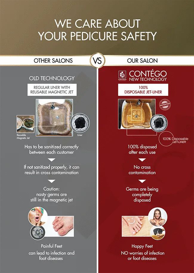 Including: This package includes the Basic Pedicure package along with antiseptic treatment, dead skin Sea salt exfoliation, callus removal, and a 7-minute massage with collagen repair cream and hot towel. Infused with Rosemary extract, Tea Tree, Eucalyptus, and Propolis, it offers effective antimicrobial, antifungal, and antibacterial benefits for your legs and feet.